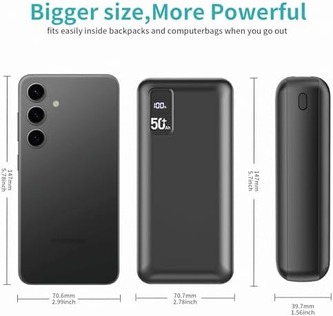 – **Massive 50000mAh Capacity:** Never worry about running out of battery again! With an incredible 50000mAh capacity, this power bank can charge your smartphone multiple times, making it perfect for long trips, outdoor adventures, or daily commutes.